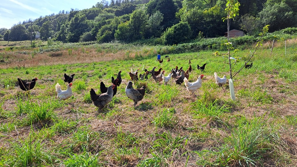 We grow a huge range of organic produce here on the farm, ranging from fresh vegetables to apples, cherries, plums, pears, hazelnuts, and so much more. The vast majority of our veg comes from our small yet mighty market garden, while our massive range of fruit is spread out across a 12-acre mixed orchard area, with hundreds of cultivars planted together with native plants, flowers, and hedgerows.